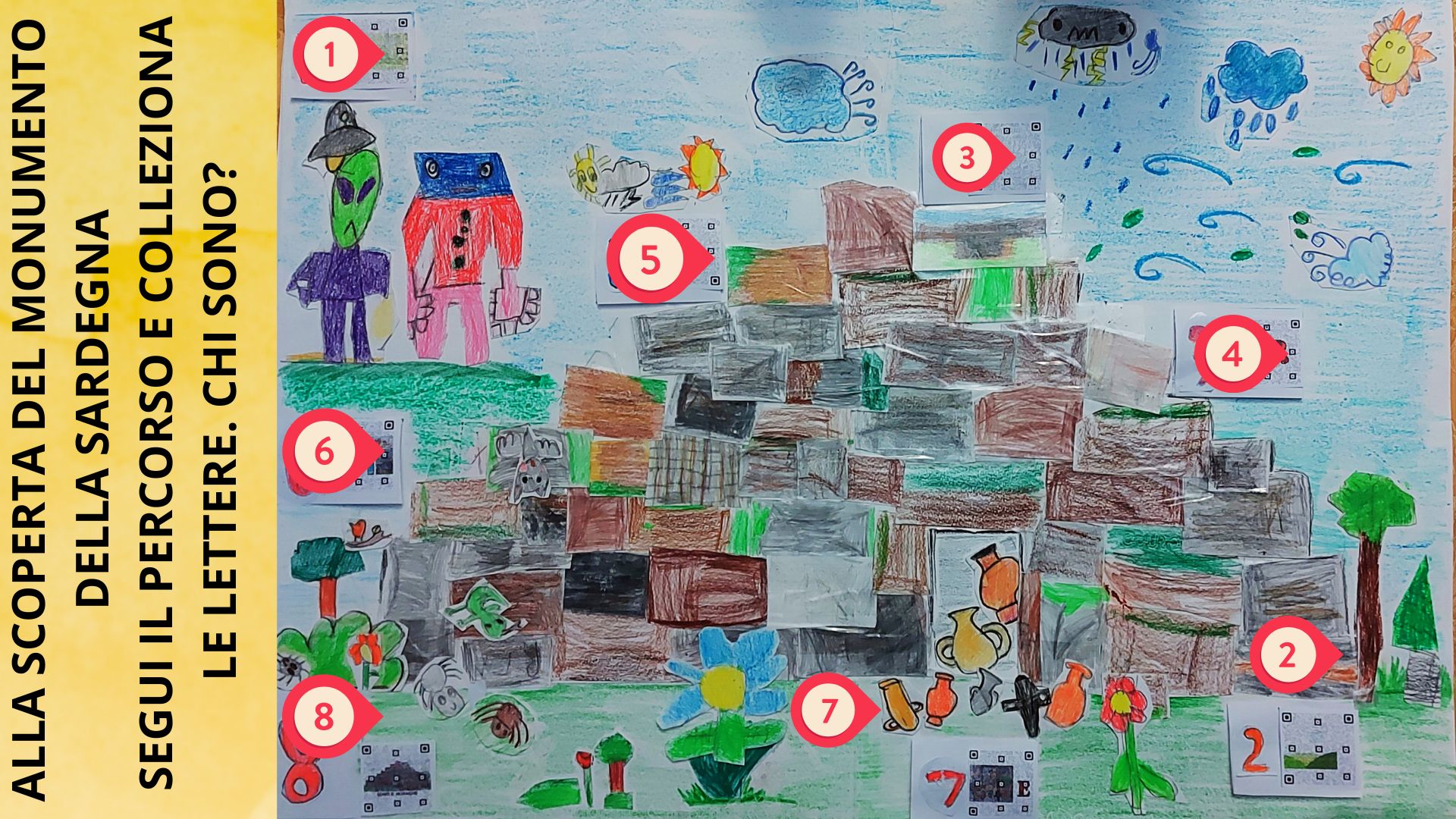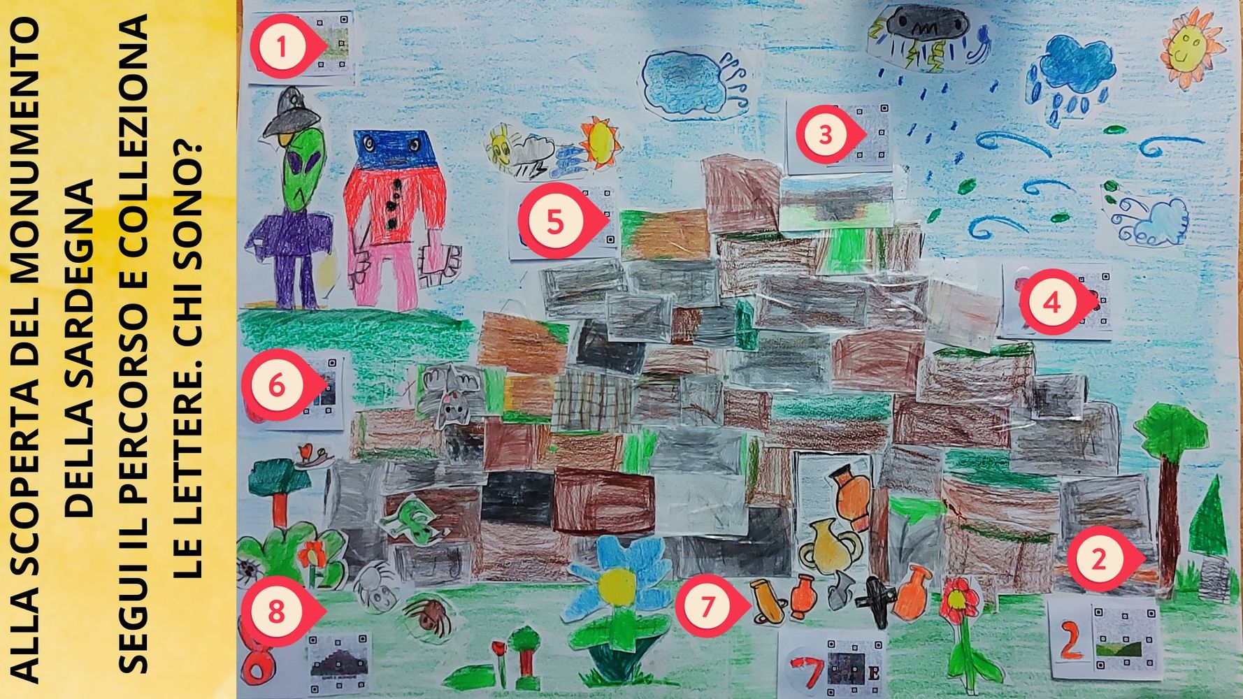 La classe 1ª primaria partecipa al concorso con un percorso creativo, cooperativo, interattivo e multisensoriale. L'elaborato è un piccolo percorso, stile caccia al tesoro, dedicato al nuraghe come simbolo di resilienza, memoria e sostenibilità.Il progetto utilizza 7 tappe, ognuna dedicata a un mistero / potere del nuraghe.