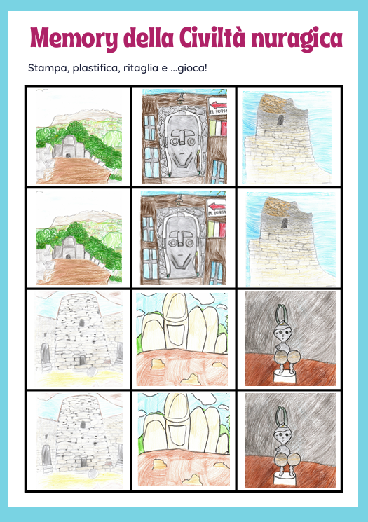 Attraverso l’osservazione di immagini relative ai paesaggi della Sardegna, i bambini sono stati guidati a riconoscere le testimonianze della civiltà nuragica. In particolare, hanno potuto osservare le diverse tipologie di nuraghe, le tombe dei giganti e i pozzi sacri e condividere ipotesi sulla funzione di queste antiche costruzioni. Molta curiosità ha suscitato anche la produzione artistica e manufatturiera, i bronzetti, la lavorazione della pietra, la realizzazione dei giganti di Mont’e Prama.