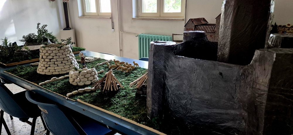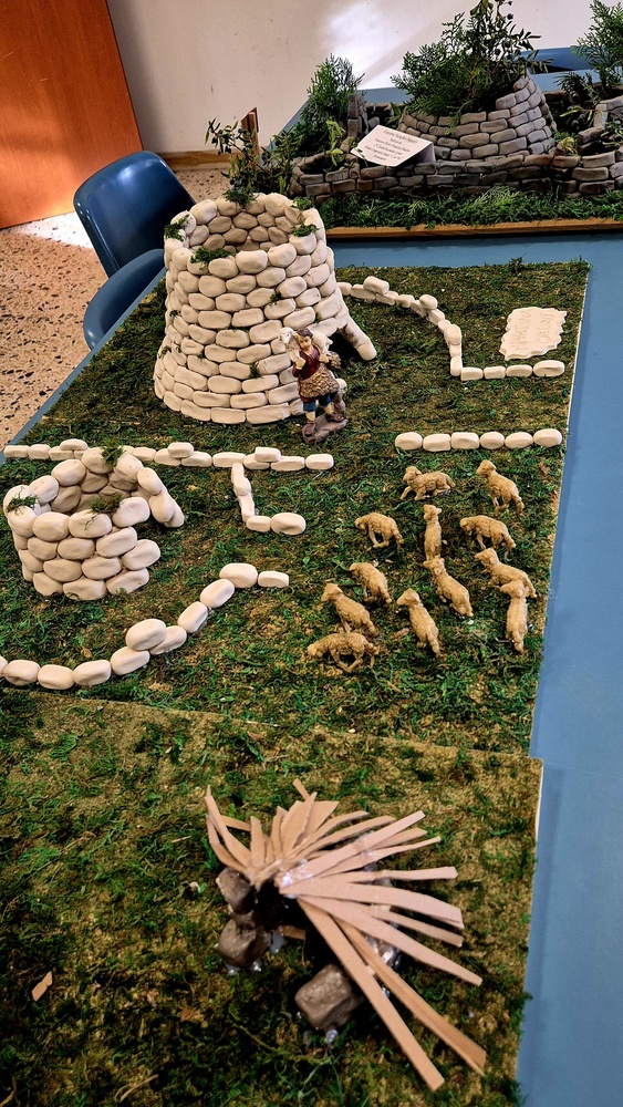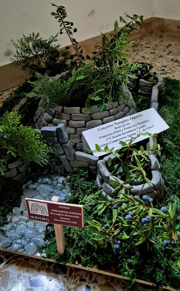Tutti insieme abbiamo realizzato le ricostruzioni utilizzando materiale di recupero, chiodi per fissare i mattoncini alla tavola di legno, cartone e legno su cui abbiamo costruito il nuraghe, poi erba finta e alcune piantine trovate in giardino che ricordano la nostra macchia mediterranea.